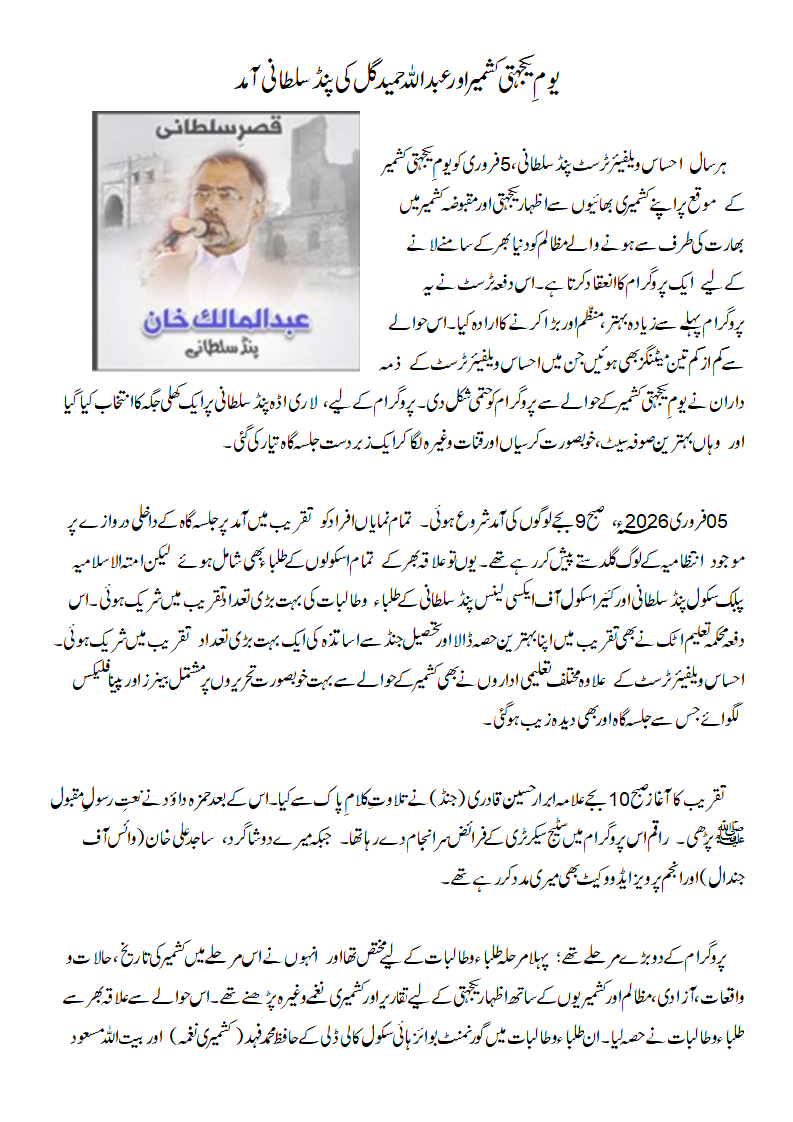 Total area of Pindsultani is 85,949 Kenal, it includes the area of ‘kala chitta’ mountain. Total population of PindSultani is 13,000 approximatly.